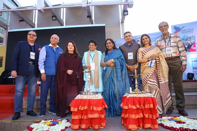 The event commenced with a traditional lamp lighting ceremony graced by eminent personalities, including Dr. Kiran Bedi, Founder and Mentor, Navjyoti India Foundation and India Vision Foundation, Dr. Kiran Chopra (Chairperson, Punjab Kesari), Mr. Achal Paul (Trustee, India Vision Foundation and Founder Director, BUZZ Communications), Mr. Amit Baveja (Managing Director, India and Southeast Asia, Burlington English), Ms. Anuradha Goel (Chairperson, PHD Family Welfare Foundation), Mr. Rajat Verma (Director, Safe And Secure Online Marketing Private Limited), and Mr. Riaz Karmali from Dubai.